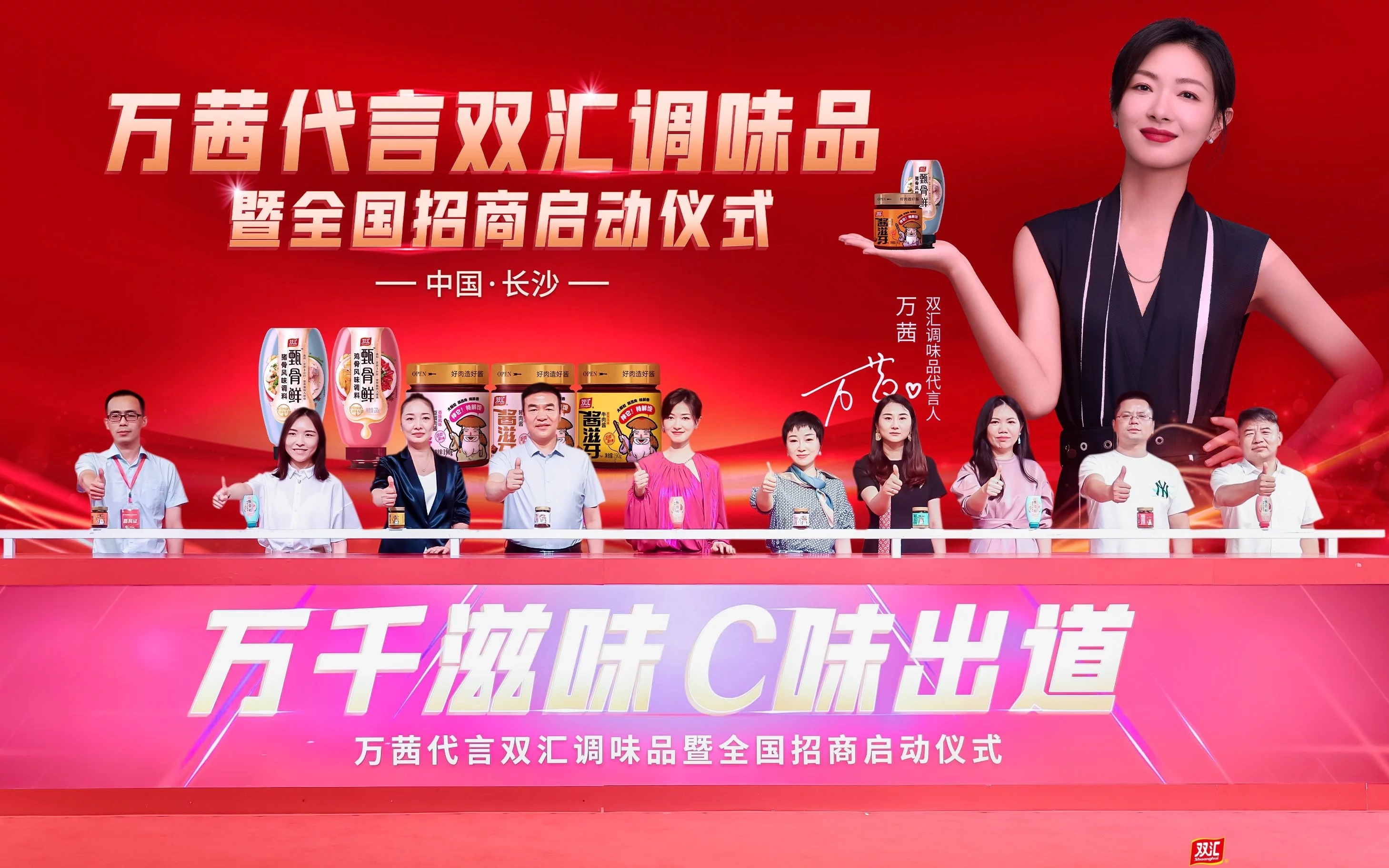 明星代言公司)代言雙匯調(diào)味品暨全國招商啟動儀式在湖南省長沙市舉行。雙匯發(fā)展營銷公關(guān)副總裁周霄代表企業(yè)宣布,簽約萬茜(