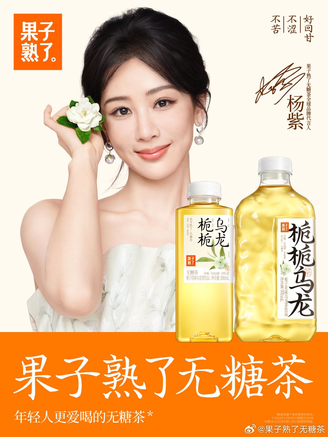 去年 5 月 6 日,果子熟了無糖茶官宣國民演員楊紫成為品牌代言人。時隔一年后,5 月 7 日,楊紫升任「果子熟了無糖茶全球品牌代言人」,并共同發(fā)布全新代言人 TVC。