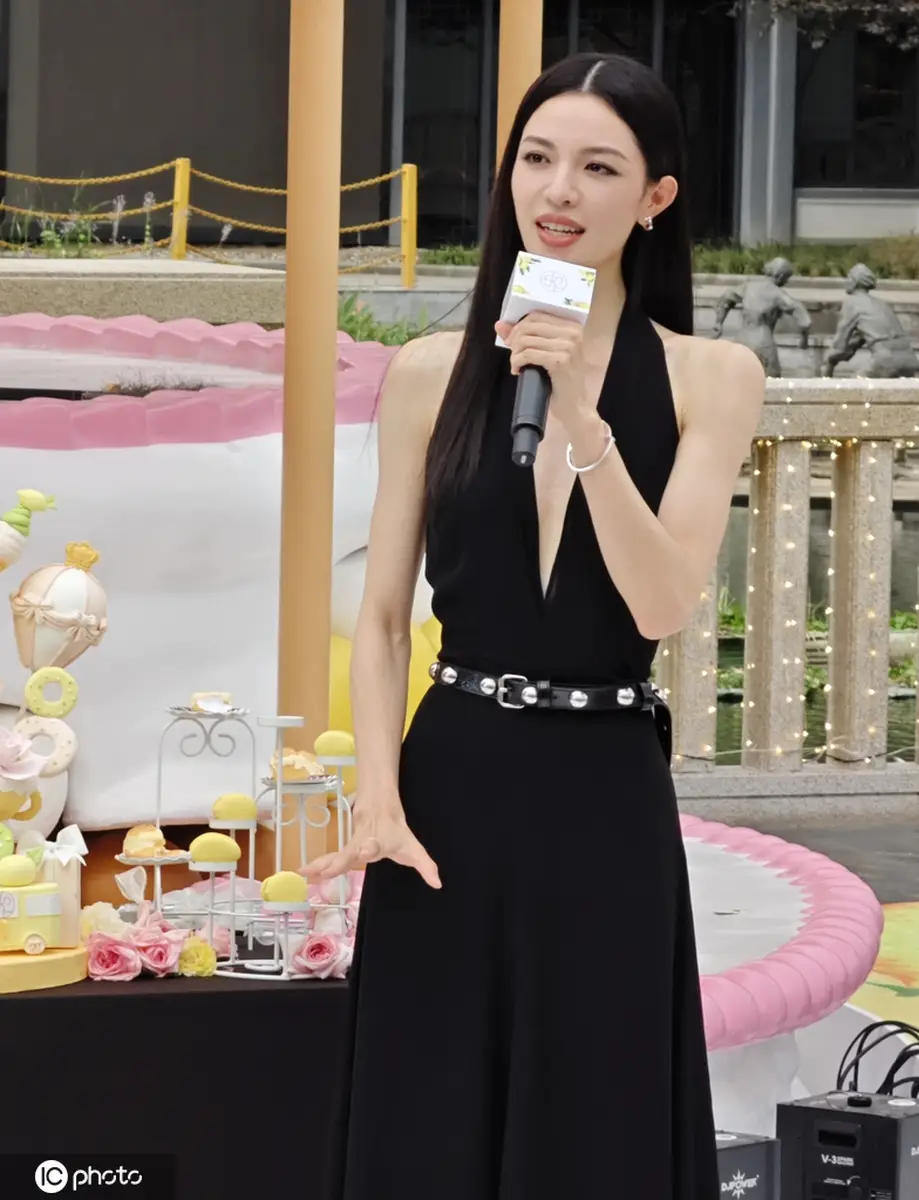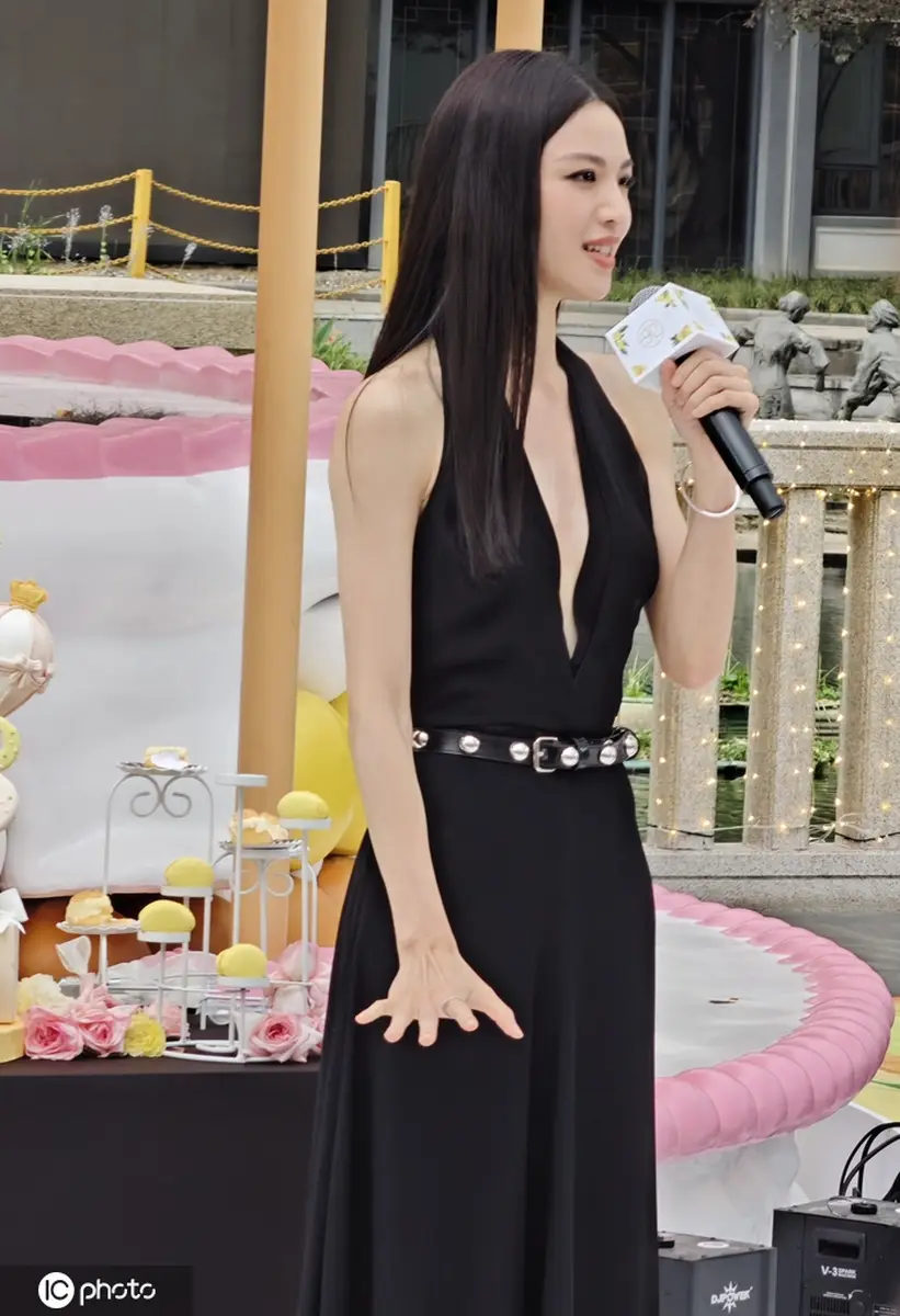 鐘楚曦出席武漢SKP一周年慶典活動(dòng) 黑色深V長(zhǎng)裙時(shí)尚大氣