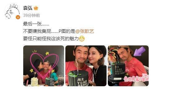 8月23日,袁弘(明星經(jīng)紀(jì)公司)在社交平臺上曬出張歆藝與兒子為自己慶生的全家福照,好幸福的一家三口!