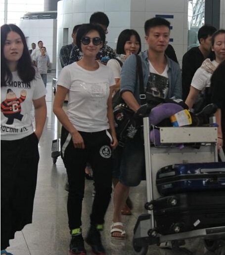 43歲朱茵現(xiàn)身機(jī)場(chǎng)上圍豐滿(mǎn) 逗萌娃開(kāi)心顯親切