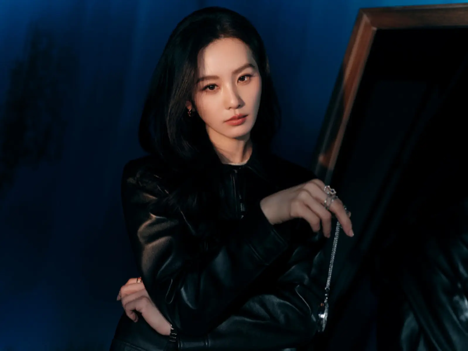 劉詩詩身穿黑色皮衣化身冷艷拽 低頭垂眸楚楚動(dòng)人