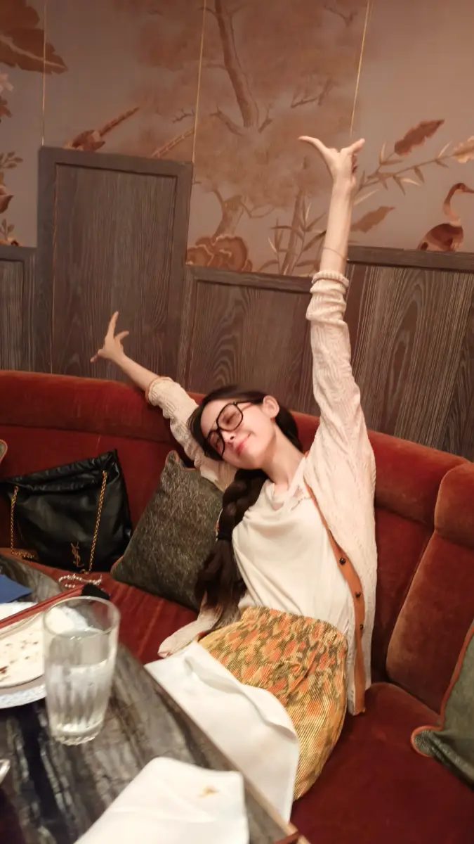 娜扎擺出慵懶pose,雙手比耶,十分愉快。
