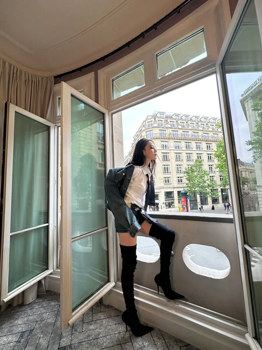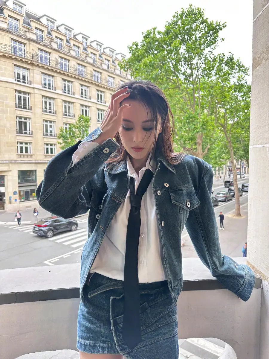 6月19日晚,張馨予(明星經紀公司)曬出巴黎時裝周看秀的造型圖,并配文“今天確實不太好惹 ???”。
