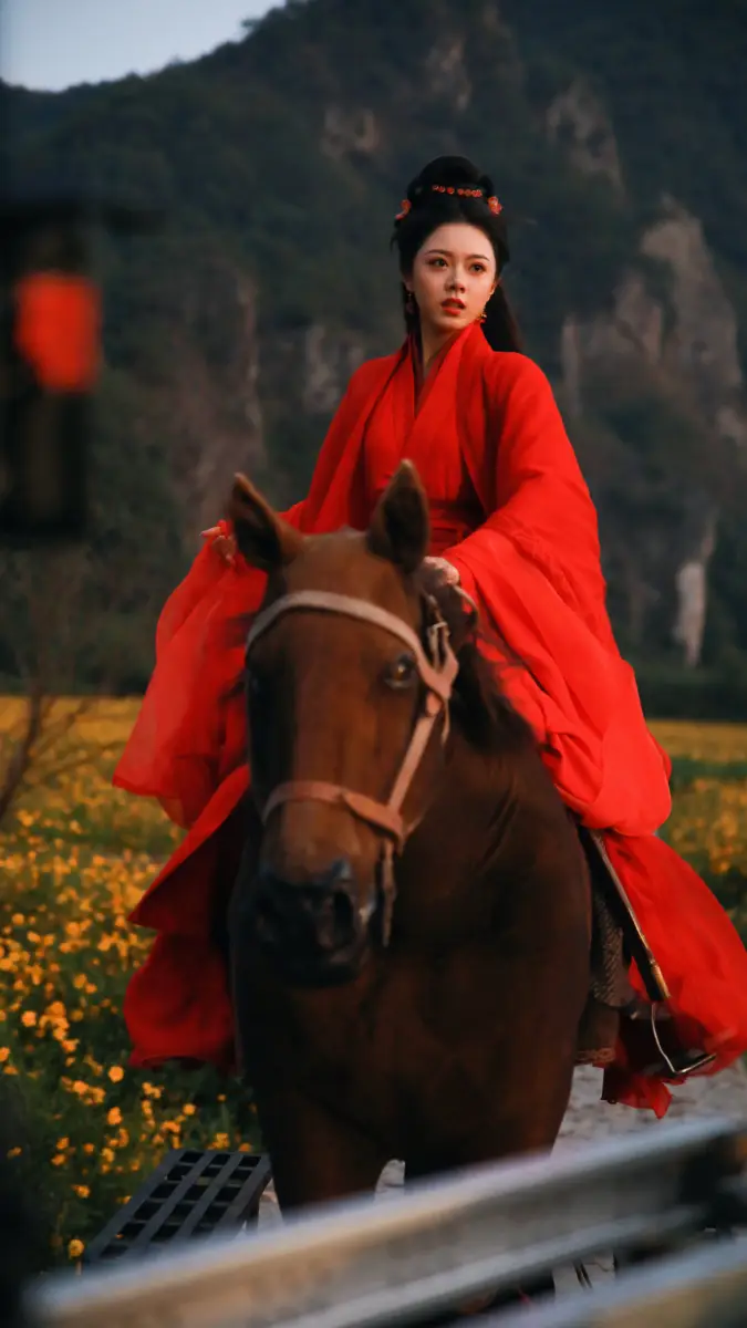 7月5日,趙今麥(明星經(jīng)紀(jì)公司)工作室發(fā)布一套組圖,照片中趙今麥身著紅色古裝騎馬,眼神堅定。