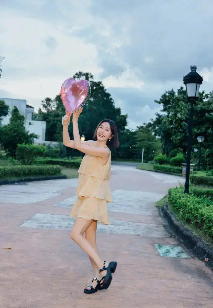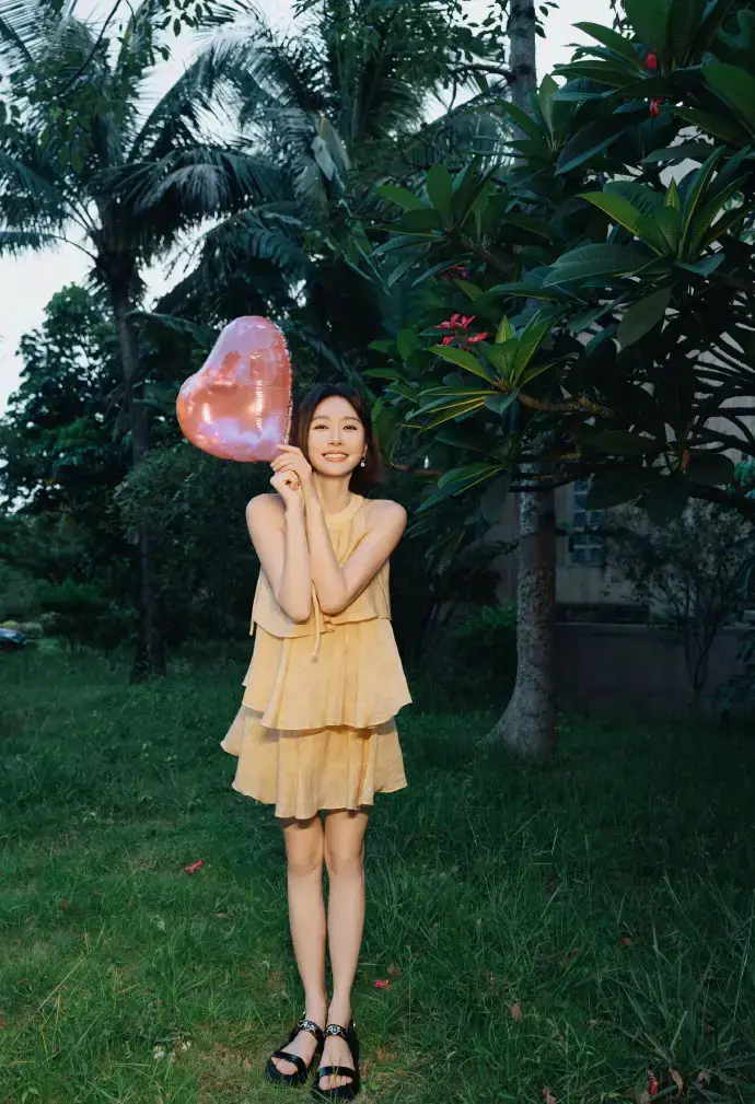 當前位置:首頁>新聞中心>娛樂新聞>秦嵐穿嫩黃掛脖裙溫柔活潑 手拿愛心氣球笑容甜美