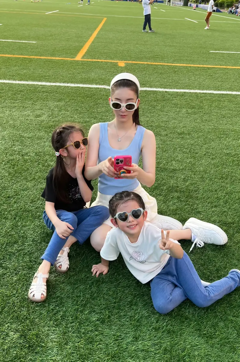 方媛帶倆女兒出游,母女三人都是高顏值!