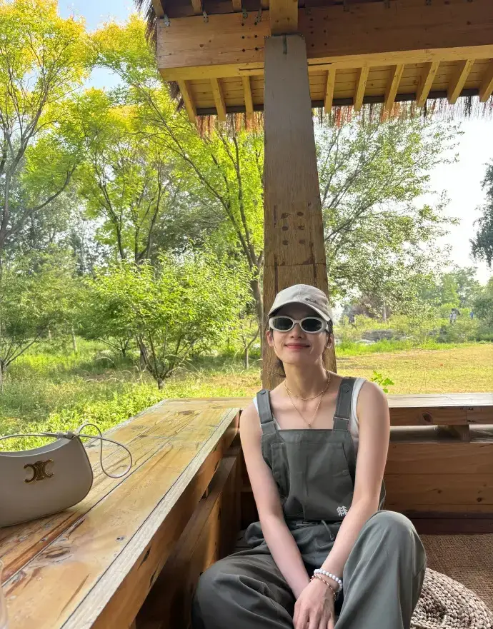 張婧儀曬公園松弛感照片 穿背帶褲少年感滿滿