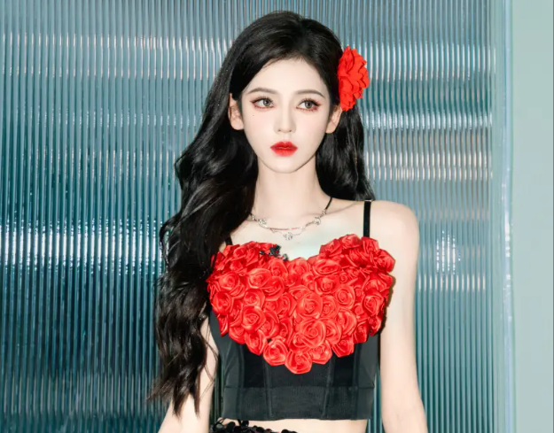 張予曦發(fā)間別紅花嫵媚動(dòng)人 宛若嬌艷綻放的紅玫瑰