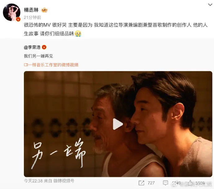 5月13日,楊丞琳發(fā)文為老公李榮浩宣傳新歌,她寫道:“很恐怖的MV 很好哭 主要是因?yàn)?我知道這位導(dǎo)演兼編劇兼整首歌制作的創(chuàng)作人 他的人生故事...