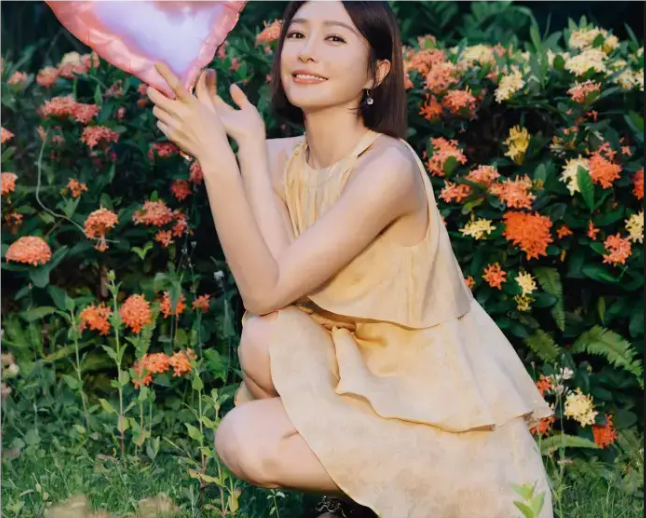 秦嵐穿嫩黃掛脖裙溫柔活潑 手拿愛心氣球笑容甜美