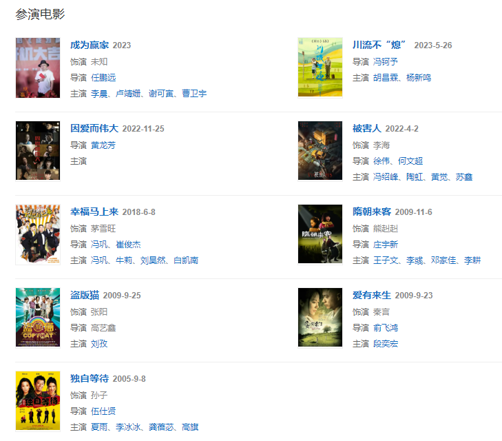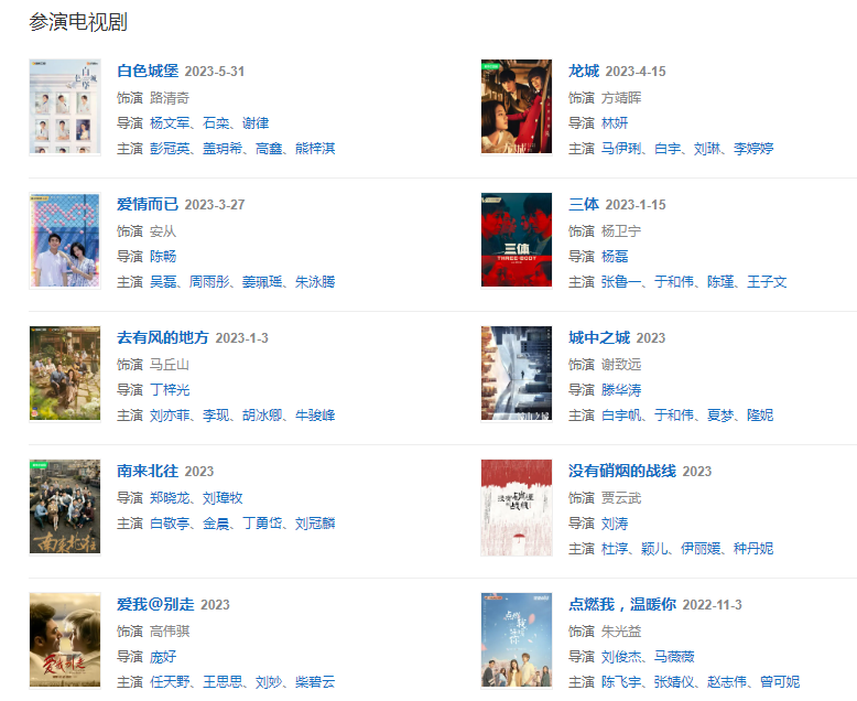 代表作品:雙面膠、愛情海濱、雙城生活、寶貝戰(zhàn)爭、以家人之名
