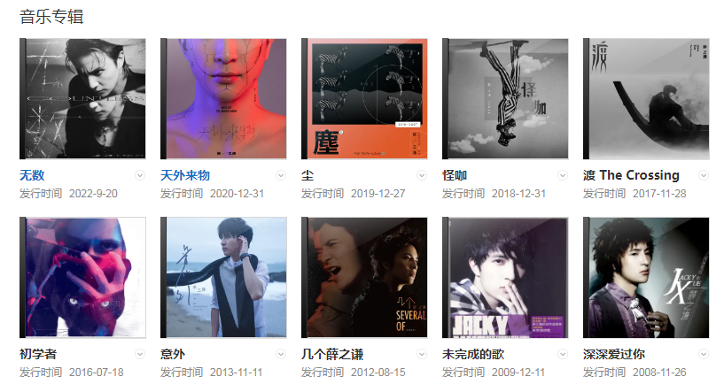 代表作品:認真的雪、演員、丑八怪、紳士、意外、你還要我怎樣、剛剛好、幾個你、我好像在哪見過你、渡、初學者、怪咖、一半、動物世界、方圓幾里、深深愛過你、慢半拍、天外來物