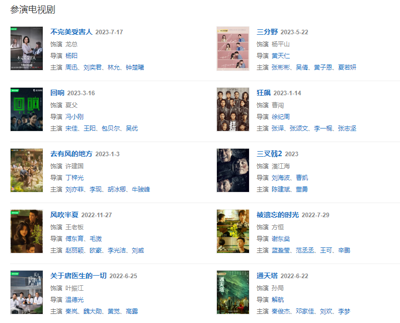 代表作品:蝸居、全家福、我愛杰西卡、黑暗中的救贖、同在屋檐下