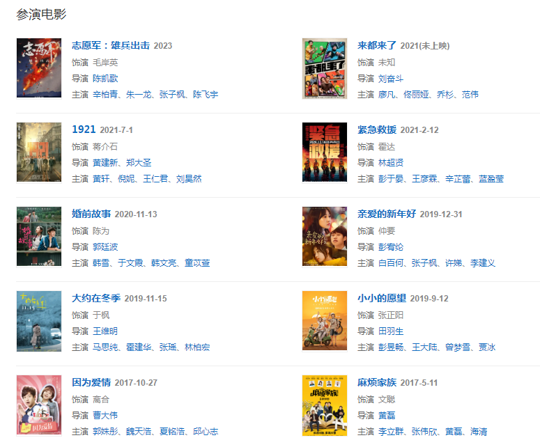 代表作品:相愛穿梭千年2、青春警事、關于唐醫(yī)生的一切、平凡的榮耀、愛的理想生活、人生若如初見、毛岸英、蘇菲日記、指縫里的光
