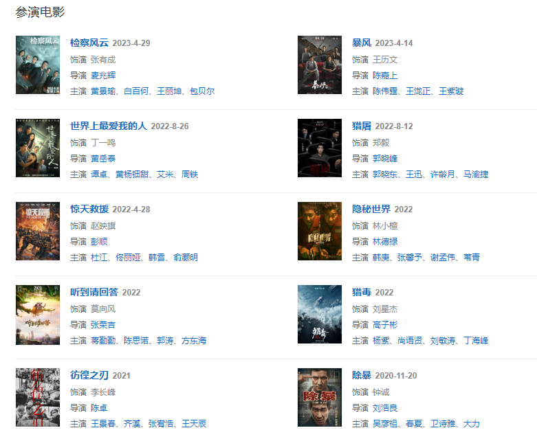 代表作品:鋼的琴、異鎮(zhèn)、湄公河大案、解救吾先生、三七撞上二十一、黎明決戰(zhàn)、繡春刀