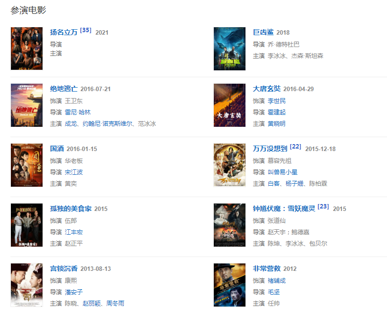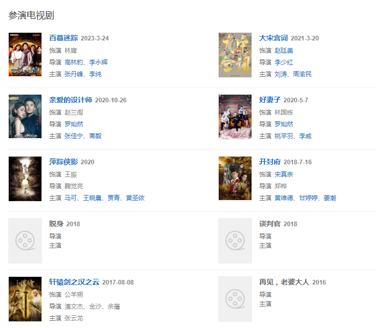 代表作品:大明宮詞、喜宴、千秋家國夢、孫中山、滄海橫流、末代皇帝傳奇