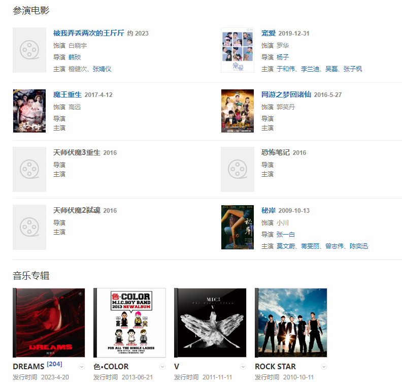 代表作品:獵罪圖鑒、虎嘯龍吟、鬢邊不是海棠紅、帶著爸爸去留學(xué)、Fly Away