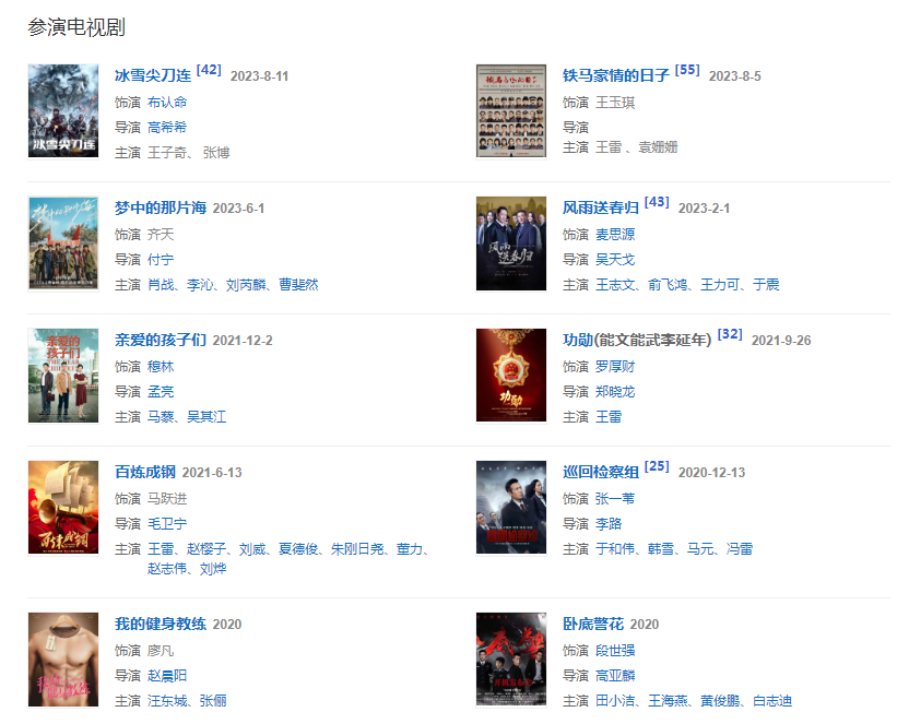 代表作品:會痛的十七歲、老炮兒、小男人遇上大女人、丑女無敵、諜·蓮花、槍械師、戀愛SOS、那小子真帥、齊天大圣前傳