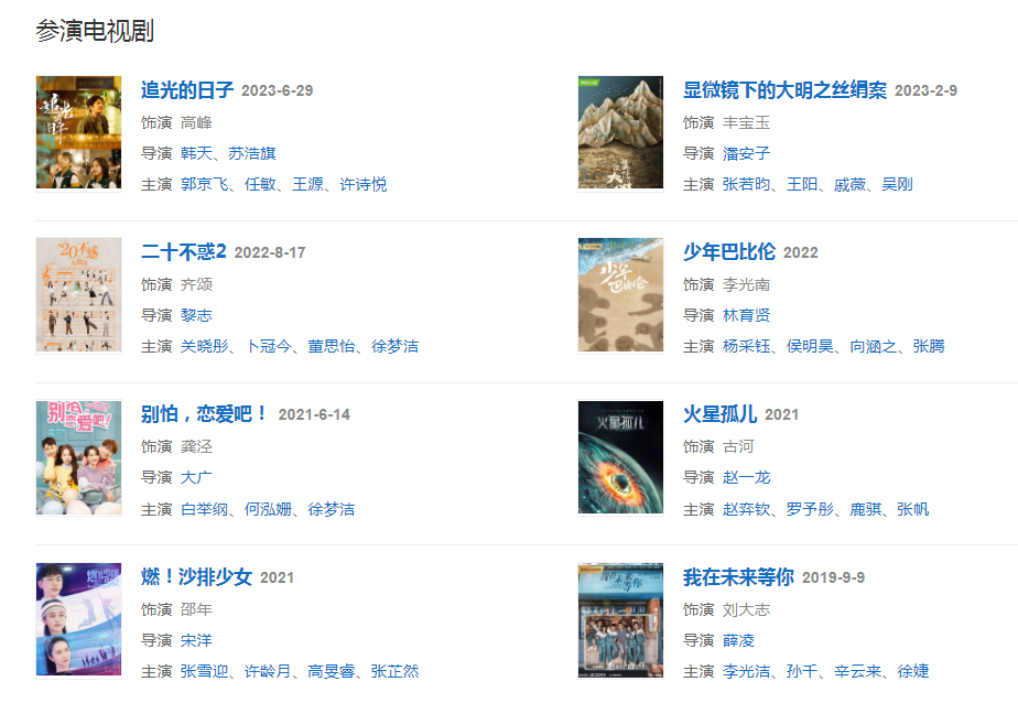 2021年,主演青春科幻劇《火星孤兒》 和勵(lì)志青春劇《二十不惑2》。