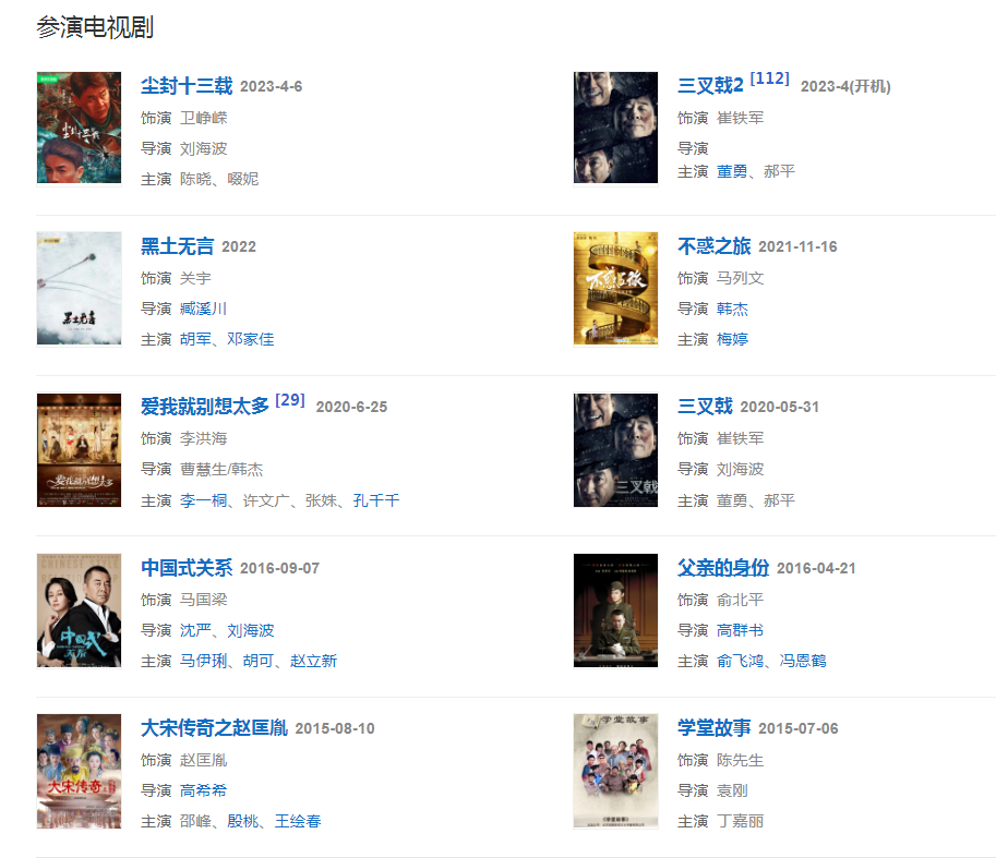 2016年,主演的諜戰(zhàn)劇《父親的身份》和現(xiàn)實題材電視劇《中國式關(guān)系》取得不俗收視率和口碑。
