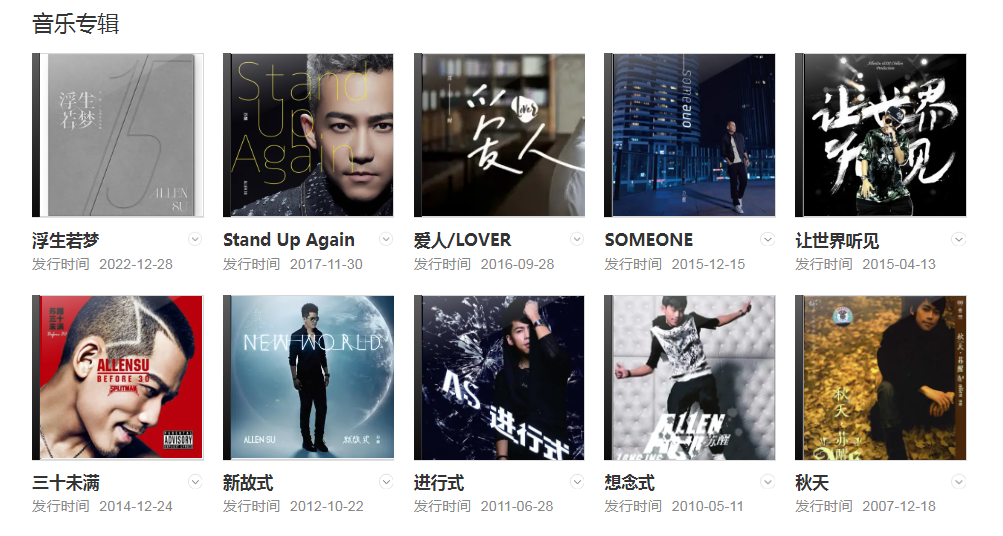 代表作品:北京City、心世界、分裂、怕愛、忽然之間、兄弟、晚安親愛的、Back Home、愛人、破億