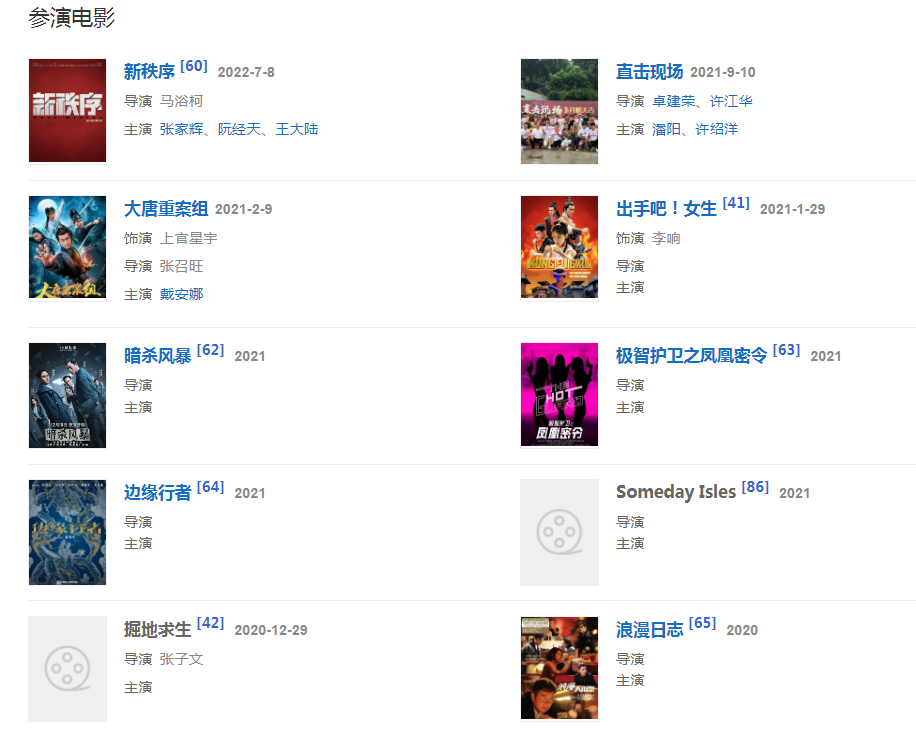 2022年4月15日,參演的犯罪動作電影《邊緣行者》上映;7月8日,友情出演的犯罪動作電影《新秩序》上映 。
