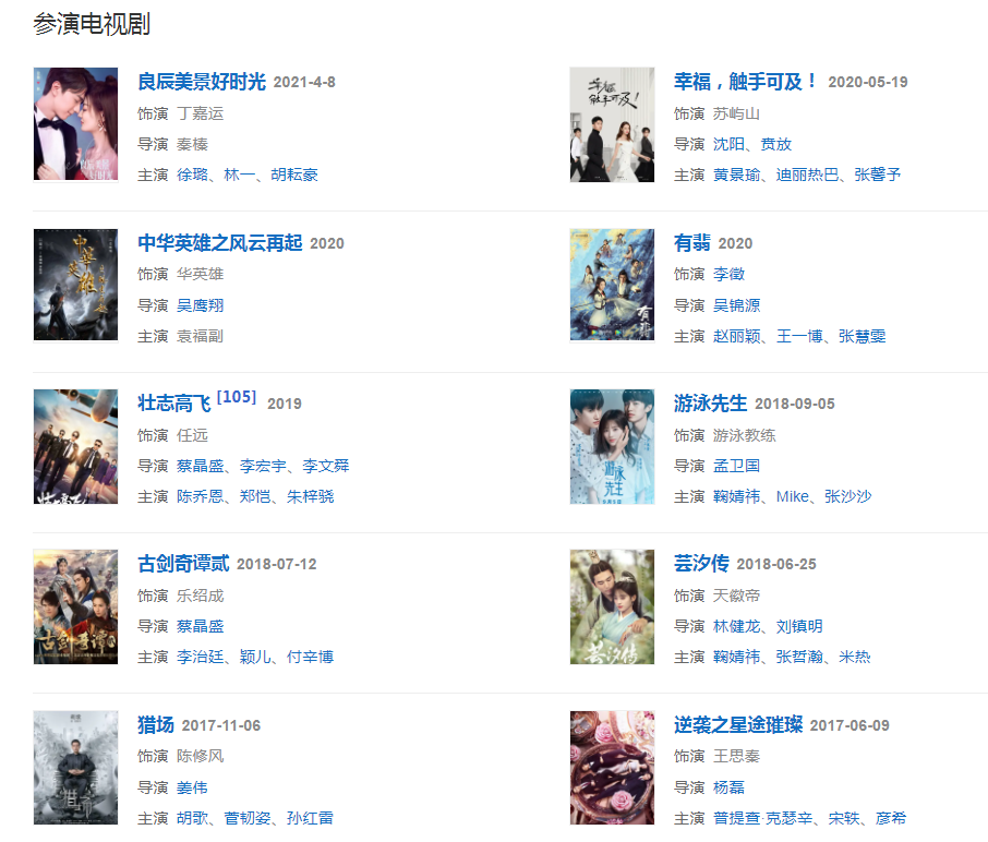 2015年參演古裝玄幻劇《幻城》。2016年參演溫情勵(lì)志時(shí)尚劇《媽媽向前沖沖沖》。