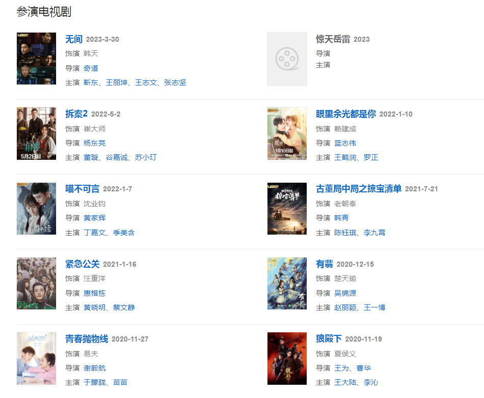2021年1月16日,參演的社會話題劇《緊急公關(guān)》播出,在劇中飾演汪重洋;7月1日,參演的電影《革命者》上映 ;7月21日,友情出演的網(wǎng)劇《古董局中局之掠寶清單》播出 ;9月,主演的諜戰(zhàn)懸疑電影《堡壘》開機(jī)。