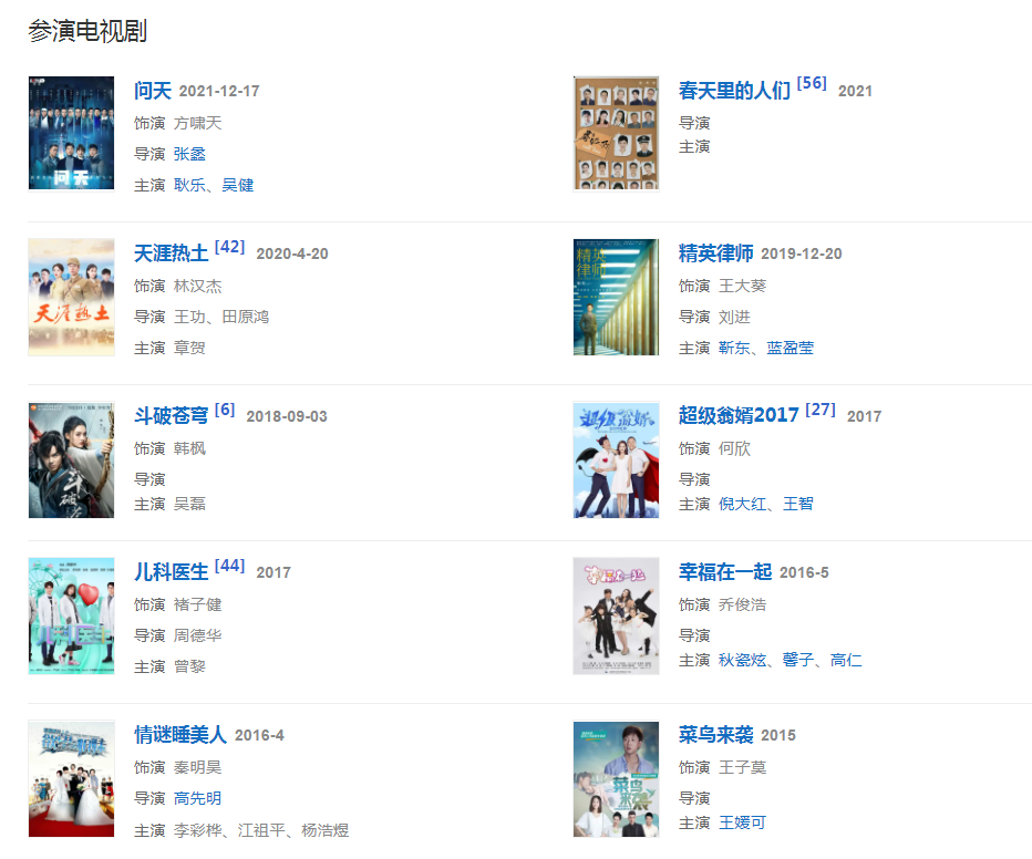 2021年11月6日,與李曉峰主演的電視劇《春天里的人們》在央視八套播出 ;12月2日,與姜超主演的國產(chǎn)科幻災(zāi)難電影《末日救援》在騰訊視頻獨(dú)家上映;12月17日,與何雨晴等主演的新時代航天事業(yè)電視劇《問天》在央視一套播出。
