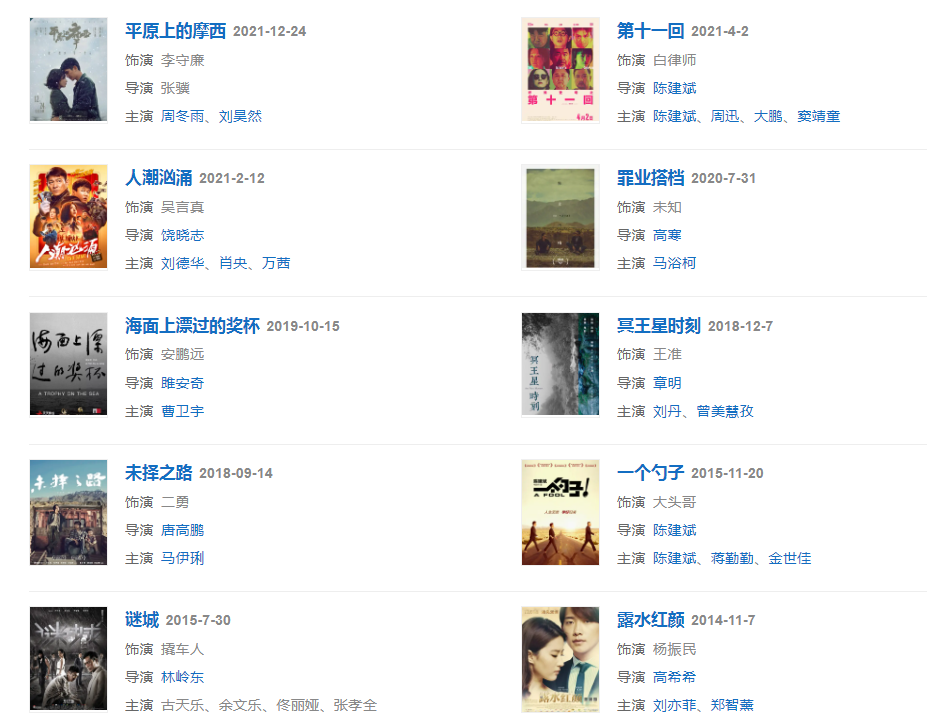 2020年10月,參演的電影《平原上的摩西》發(fā)布先導(dǎo)預(yù)告片 ;同年,參演的陳建斌執(zhí)導(dǎo)的電影《第十一回》上映。