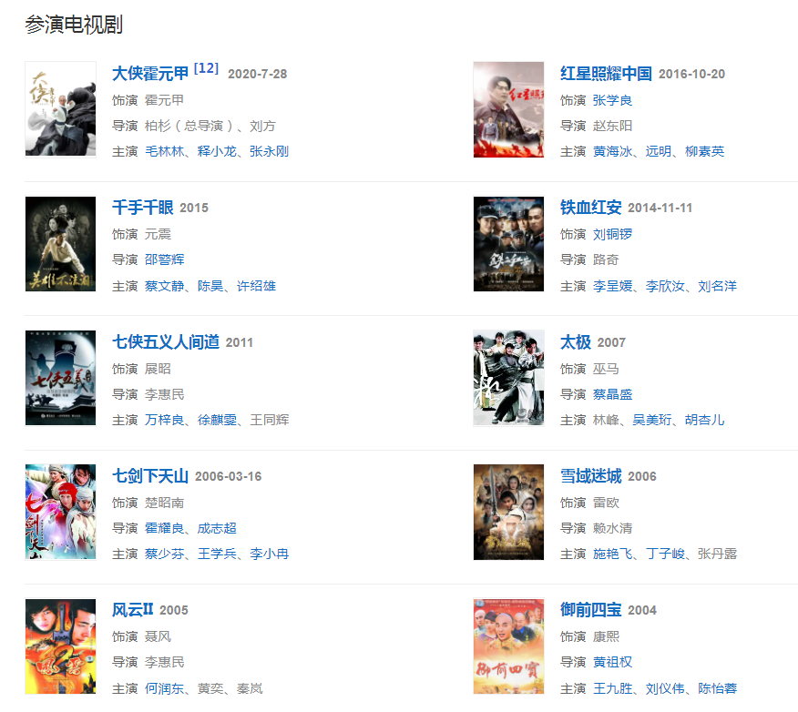 代表作品:黃飛鴻之王者之風(fēng)、蘇乞兒、斷刀客、風(fēng)云、生死拳速、中華大丈夫、青蛇、霍元甲