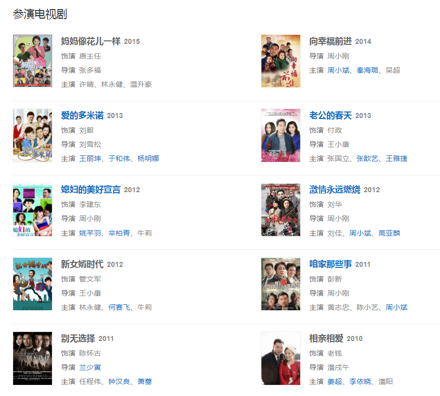 代表作品:圈子、小合唱、我慣著他、專(zhuān)家指導(dǎo)