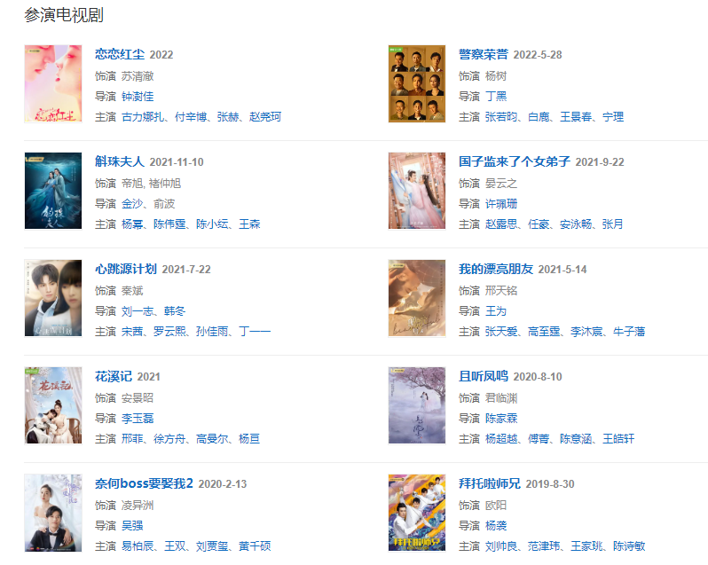 2019年,主演的甜寵浪漫愛情劇《奈何Boss要娶我》在搜狐視頻和芒果TV聯(lián)合播出 。