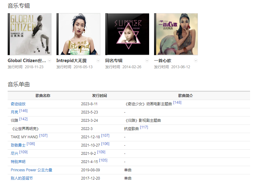 2018年,獲得亞洲音樂盛典年度最佳女歌手獎;同年,推出第3張個人音樂專輯《Global Citizen世界公民》,并開啟吉克雋逸世界公民公告現場。