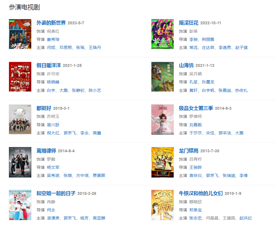 代表作品:武林外傳、潛伏、都挺好、離婚律師、找到你、搜索、風(fēng)暴、送我上青云、我的長征