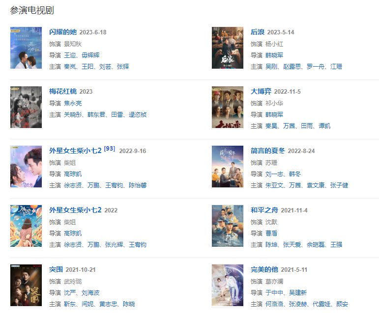 代表作品:神話、金枝玉葉、寶貝、離婚律師、敢愛、幻城、周末父母、小丈夫、沙海