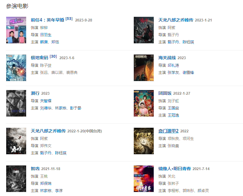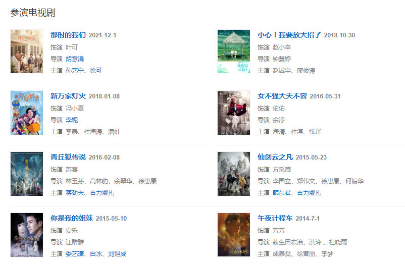 2016年參演電視劇《青丘狐傳說》、《江城三月》 和電影《發(fā)條城市》、《幸運(yùn)是我》。