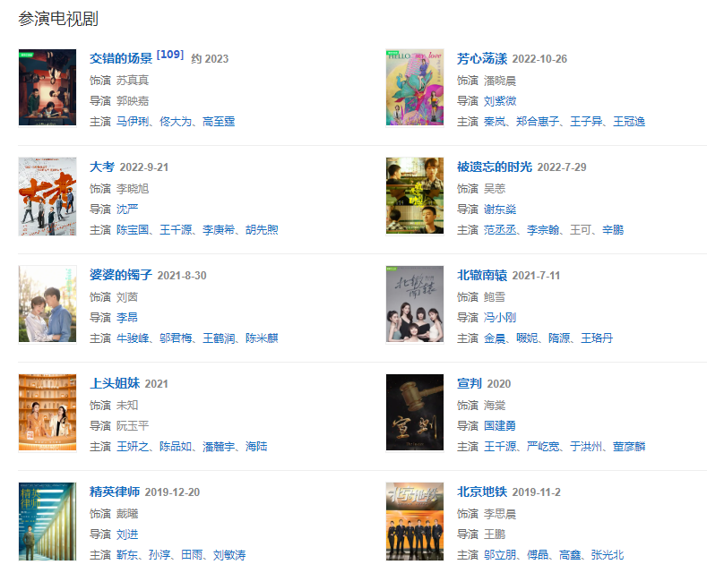 代表作品:甄嬛傳、外科風(fēng)云、北轍南轅、精英律師、緊急救援