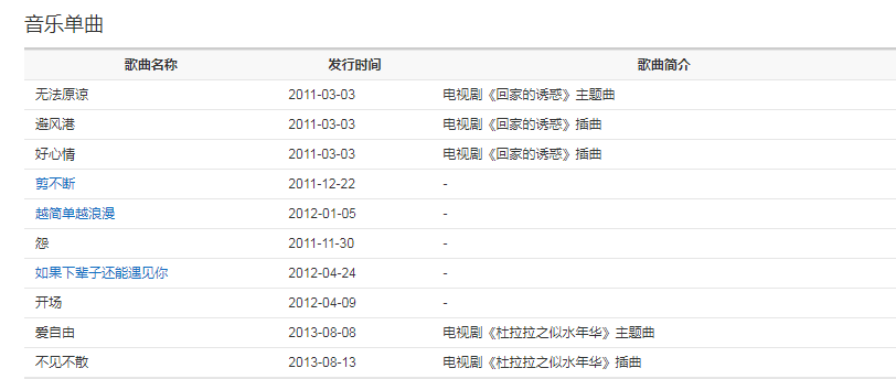 2013年,為電視劇《杜拉拉之似水年華》演唱主題曲及插曲