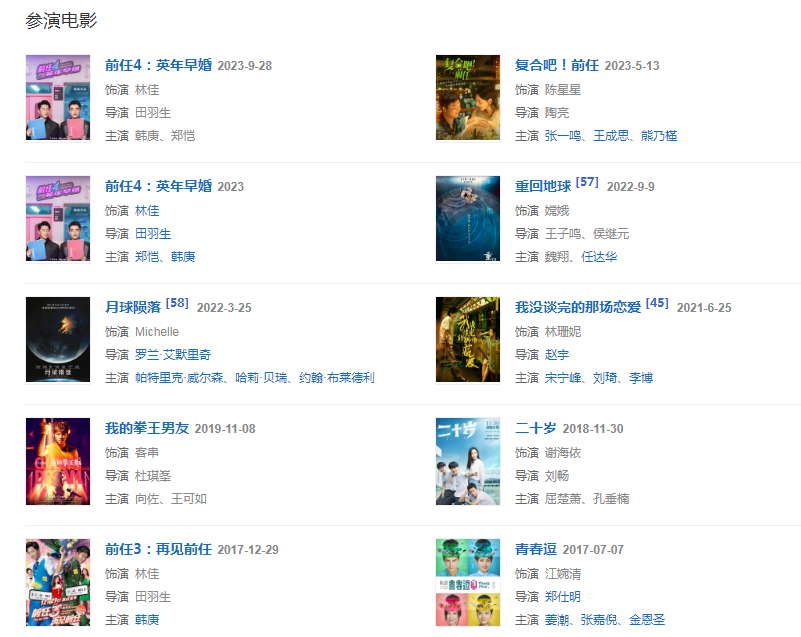 代表作品:體面、斗志、前任3:再見前任、尚未界定