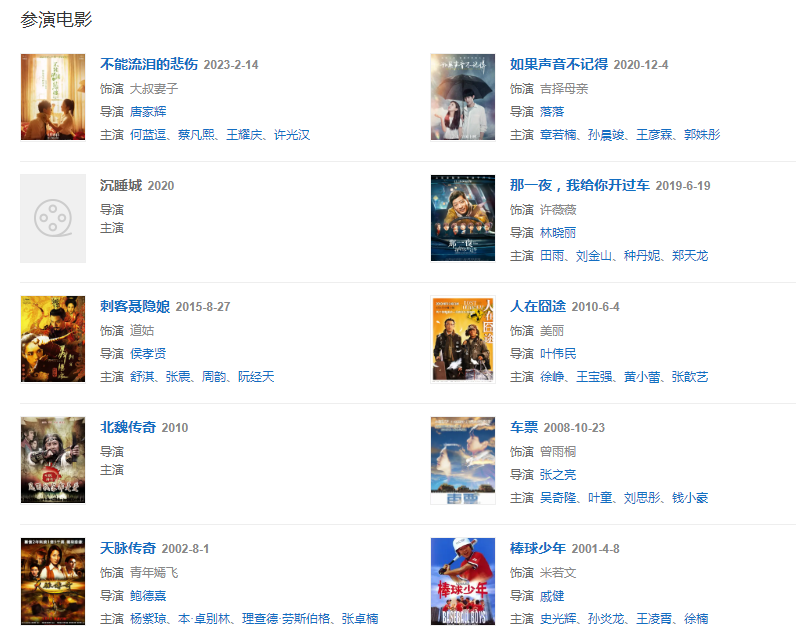代表作品:我們的純真年代、戰(zhàn)長(zhǎng)沙、苦咖啡、家常菜、中國(guó)式離婚、人在囧途、大約在冬季、爺們兒