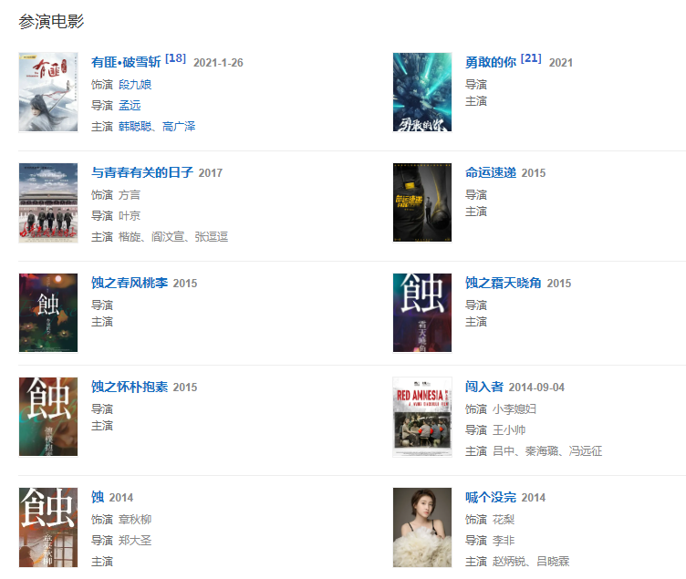 代表作品:我的前半生、與青春有關(guān)的日子、生逢燦爛的日子、別和我談高富帥、星光都市2