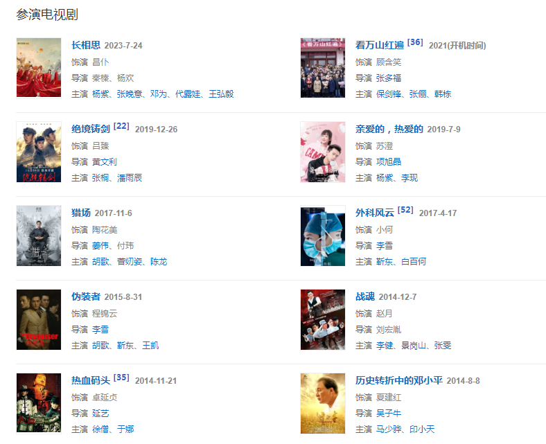 代表作品:偽裝者、獵鷹1949、絕境鑄劍、天陣、國家命運、歷史轉折中的鄧小平
