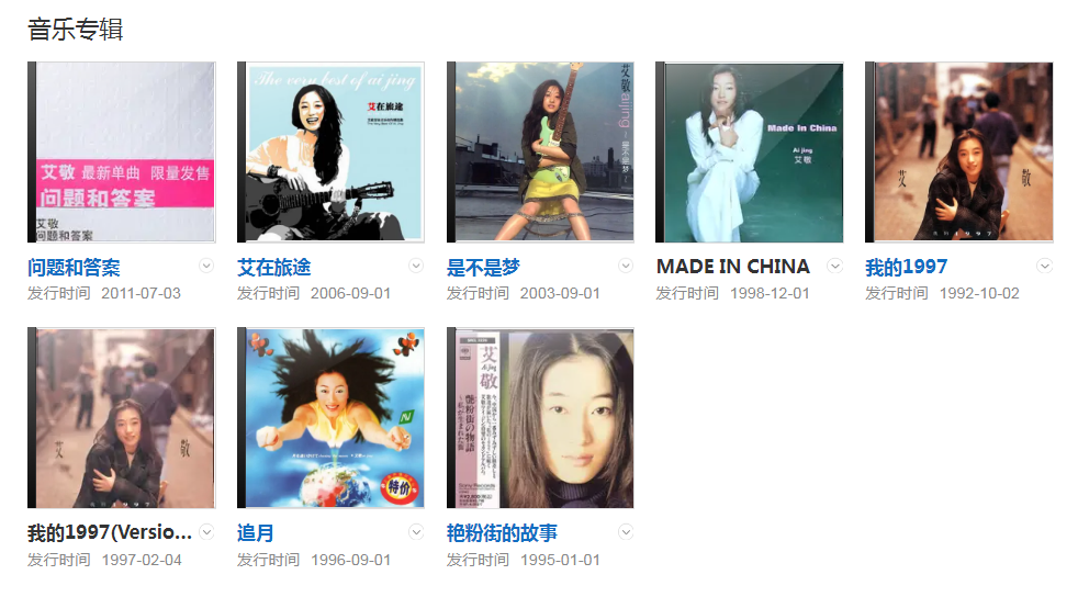 代表作品:我的1997、《艷粉街的故事》、《追月》、《中國制造》、《是不是夢》、《紐約紐約》、問題和答案、《愛人 》