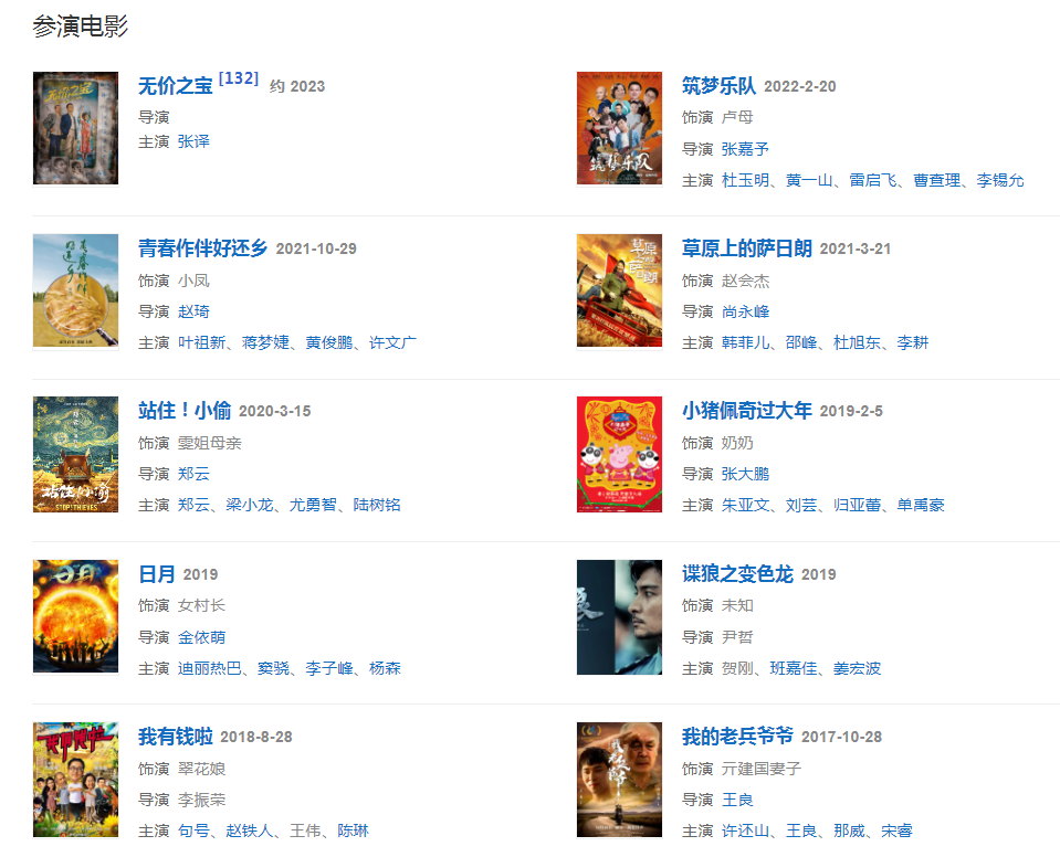 2005年參演賀歲片《別拿豆包不當干糧》飾演劉翠翠。