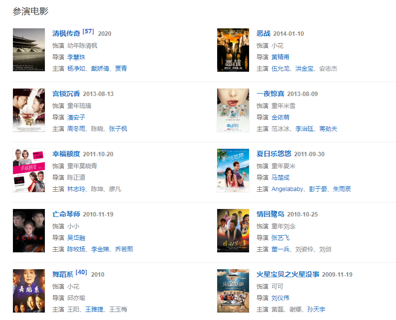2010年,在古裝宮廷電視劇《美人心計(jì)》中飾演童年時(shí)期的聶慎兒和王娡。