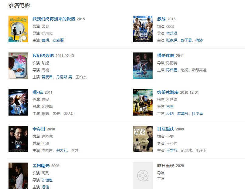 20156月,主演動作電影《搏擊迷城》;9月,主演愛情喜劇電影《男神時代》。