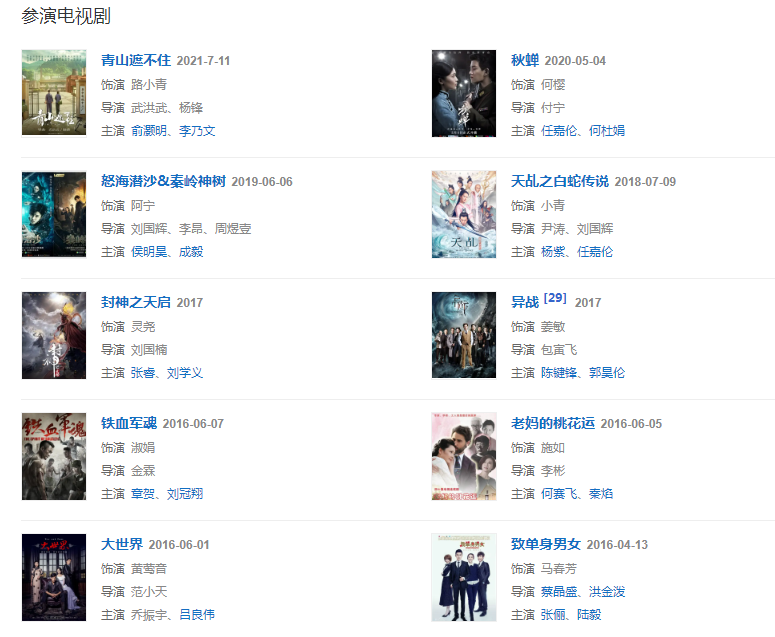 2018年,她主演的古裝神話劇《天乩之白蛇傳說(shuō)》在愛(ài)奇藝視頻播出  。