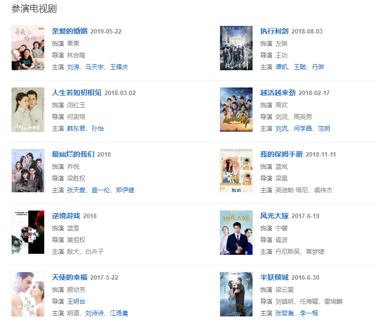 代表作品:執(zhí)行利劍、紅箭、錦繡緣華麗冒險、緣來幸福、熱血、團圓、親愛的婚姻、我的保姆手冊、風光大嫁、黛玉傳
